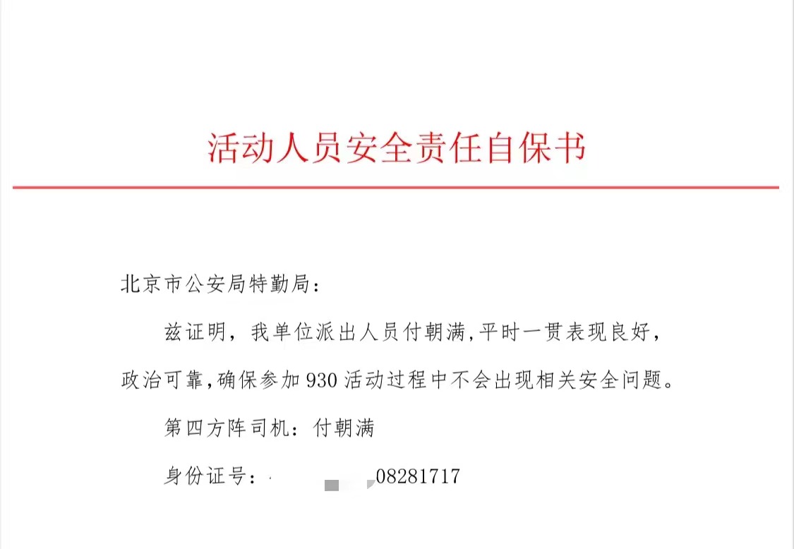 很荣幸参加9月30日向人民英雄敬献花篮仪式活动,为国家重大活动提供车辆,9月17日公司王经理(手机13661173005)接到北京市市委的电话后积极安排公司优秀司机付师傅,并安排车辆丰田考斯特19座(车牌:京AAD558),并反复嘱咐司机严格按照仪式活动程序,听从领导安排,对车辆进行消毒排除安全故障确保安全顺利完成本次活动任务!