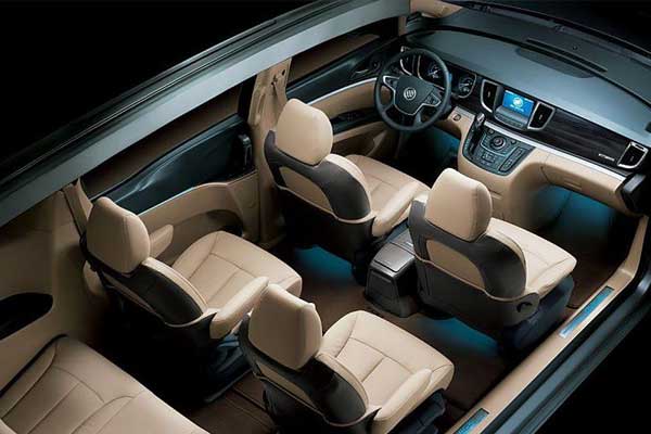 内饰方面,全新GL8在别克360度环抱一体式设计基础上,融入了名为“展翼”的新家族式设计语言,新车在内饰、中控面板、膝部以上接触区域均采用了软包覆材质。此外,全新GL8还配有超大全景双天窗和Moon-White月光白氛围灯,营造出静谧的车内氛围。除此之外,得益于更高效的前舱布局、后悬的增加和前后轮距的扩大,全新GL8的乘坐空间和视野得到了进一步提升,其中第一排座椅将增加头部、膝部以及腿部空间,第二排座椅配备有电动腿托、座椅加热/通风/按摩、扶手调节、侧翼六向可调航空头枕及弹出式双杯托等配置,第三排座椅还增加了第三排中央扶手。