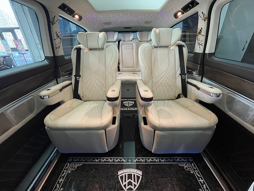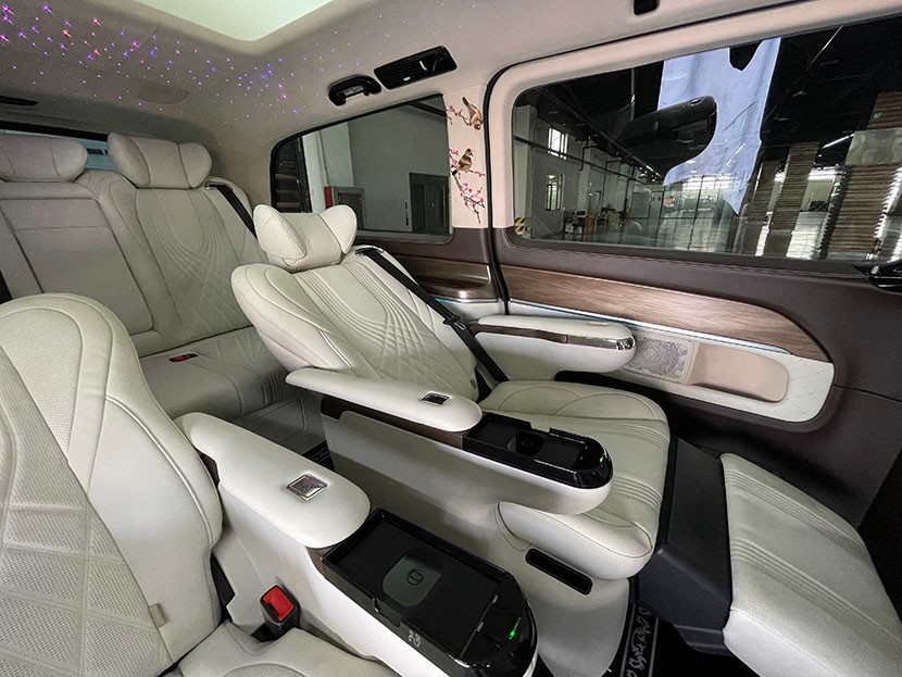 奔驰V260L七座升级豪华商务的配置,是所有商务车中最高的,除了得益于国六V260七座原车空间的宽敞舒适,更重要的是对于内饰升级奔驰商务有着一套成熟的设计方案。最基础的整车七座焕新、包覆,到带隔断一体舱的舒适配置,多年来从奔驰威霆打下的坚实基础,MPV车型的升级设计越来越完整化,在保持了独特的个性设计之外,大体的布局也日趋规格化。